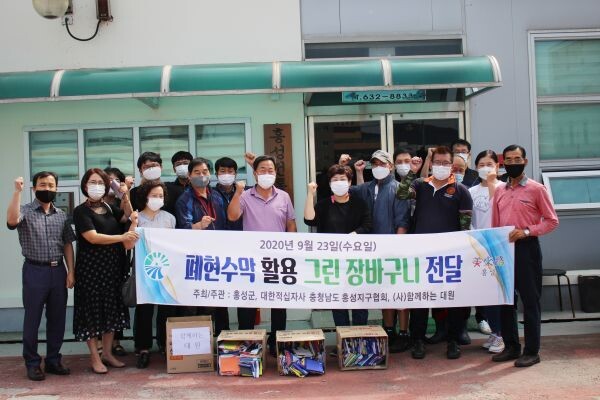 군은 23일 추석 명절을 앞두고 홍성 상설시장과 전통시장을 방문해 폐현수막을 새활용해 제작한 ‘그린 장바구니’700장을 전달했다.