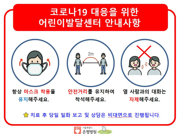 사회적 거리두기 단계 격상에 따라 은평병원 어린이발달센터는 안전한 치료를 최우선으로 치료 진행방식 및 동선 조정을 검토하게 됐다.