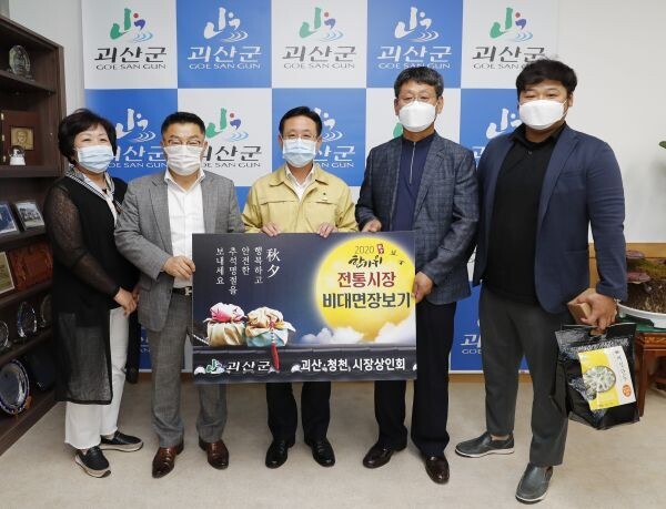 군은 신종 코로나바이러스 감염증 확산에 따라 비대면 장보기 행사를 개최하기로 하고 24일 괴산·청천전통시장 상인회와 합의식을 가졌다.