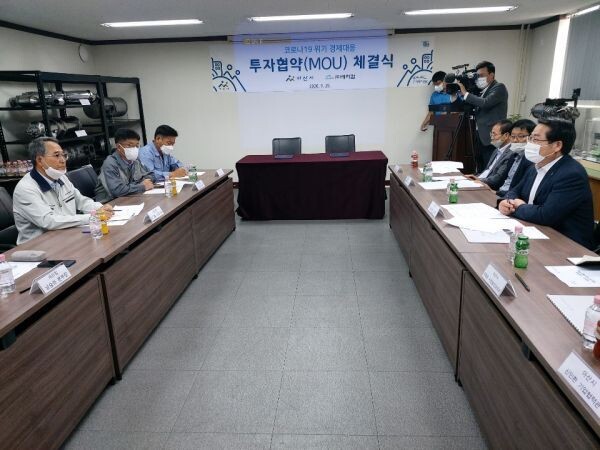 [무한뉴스] 오세현 아산시장이 25일 ㈜세라컴을 방문해 기업관계자와 근로자를 격려하고 투자 MOU를 체결했다.