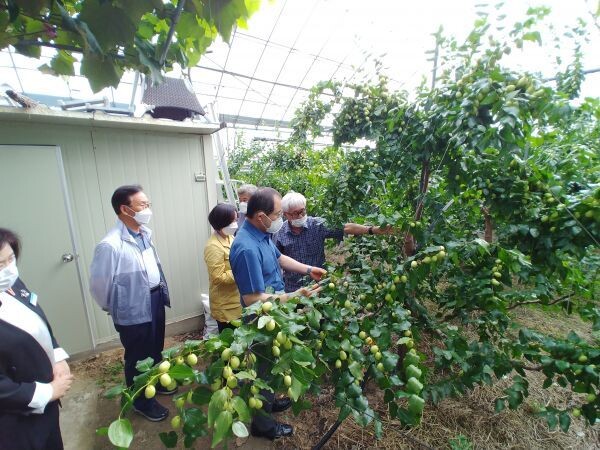 송 원장은 대추재배 현장을 점검하는 한편 기상이변으로 인해 착과량이 지난해 대비 30% 가량 감소했을 뿐만 아니라 코로나19로 인해 대추축제가 온라인 축제로 전환되며 대추판매에 큰 어려움을 겪게 된 대추농가의 애로사항을 적극 청취했다.