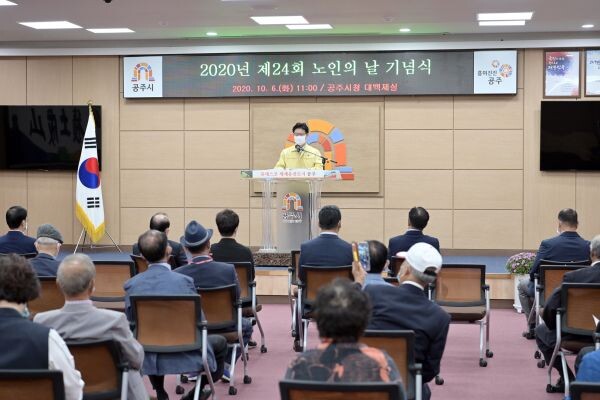 이날 행사에는 김정섭 시장을 비롯한 이종운 공주시의회의장, 공주시노인회원 등 코로나19 상황을 감안해 최소 인원만 참석한 가운데 열렸다.
