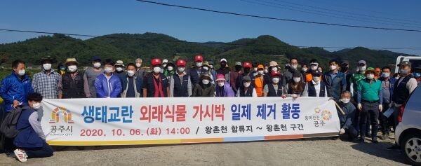 이날 행사는 가을철 열매가 떨어지기 전 선제적으로 가시박 줄기를 제거해 집중 번식을 예방하기 위한 것으로 공주시 온누리봉사단과 공주야생동식물관리협회 등 8개 환경관련 단체가 참여했다.