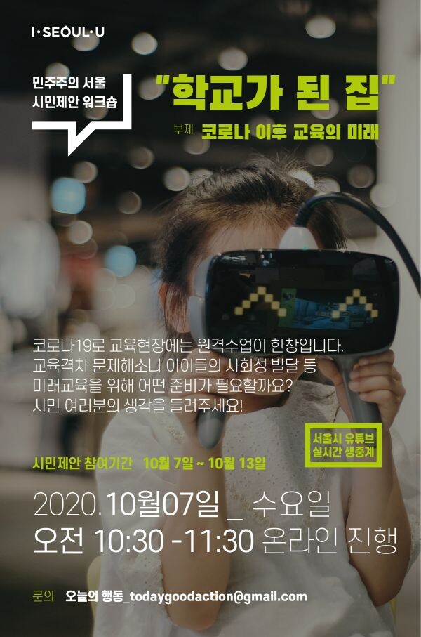 코로나 이후 원격수업 등 미래 교육 문제에 관심 있는 시민 누구나 참여 가능하며 서울시 유튜브를 통해 생중계되어 실시간 채팅방을 통해 의견을 남길 수 있다.