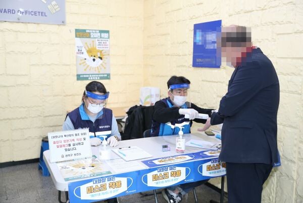 근무자들은 오전 9시 ~ 저녁 6시까지 방문자 명부 작성과 발열체크, 방역물품 배부 등 기본적인 방역수칙 준수 홍보 및 방문자 통제 등 점검을 통해 유증상자 발생 시 신속한 코로나19 검사가 이루어질 수 있도록 안내한다.