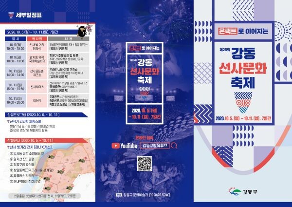 제25회 강동선사문화축제 모든 프로그램은 온라인으로 진행되며 강동구청 유튜브로 접속하면 관람할 수 있다.