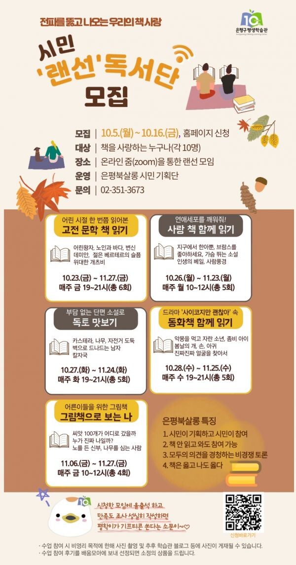 각 프로그램 당 최대 10명까지, 책을 사랑하는 시민이라면 누구나 신청할 수 있으며 신청은 은평구평생학습관 홈페이지를 통해 가능하다.