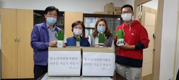 후원물품은 지역 내 청소년 400여명이 참여해 가정에서 바느질로 손수 만든 선인장 가습기로 ‘고생하시는 의료진분들 힘내세요’, ‘대한민국 의료진 파이팅’등의 직접 작성한 응원 메시지까지 전해 훈훈한 감동을 더했다.