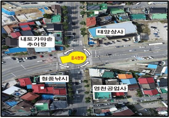 공사기간 동안 태양상사 앞 교차로 일부가 통제되며 회전교차로 형태의 임시교차로가 운영된다.