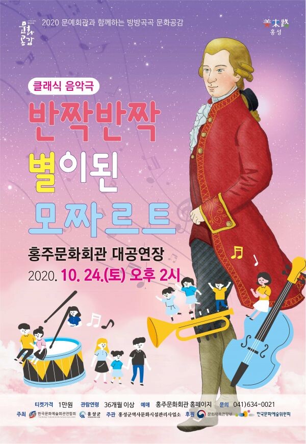 ‘반짝반짝 별이 된 모차르트’는 오는 10월 24일 오후 2시 홍주문화회관에서 개최되며 티켓은 12일부터 홍주문화회관 홈페이지에서 예매할 수 있다.