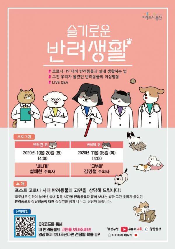 서울 용산구가 코로나 시대 반려동물 보호를 위해 비대면 교육 ‘슬기로운 반려생활’을 2차에 걸쳐 시행한다.