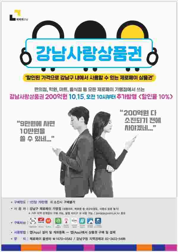 소상공인 매출 증진을 돕기 위해 4·7·9월에 걸쳐 430억원 규모로 발행됐던 강남사랑상품권은 각각 조기 매진되며 주민들의 큰 호응을 받았다.