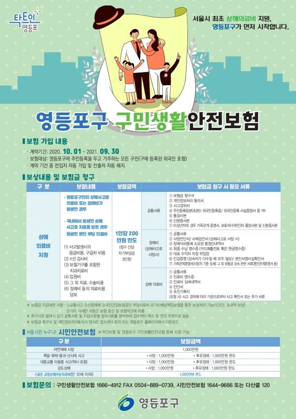 기타 자세한 사항은 영등포구 구민생활안전보험 접수센터로 문의하면 된다.