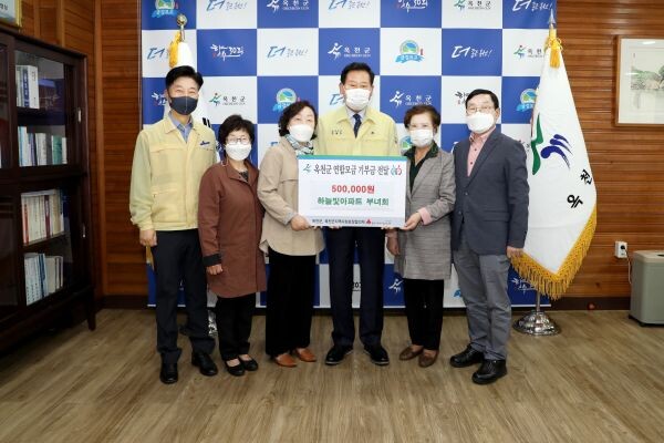 [무한뉴스] 옥천읍 하늘빛아파트 부녀회가 14일 관내 어려운 이웃을 위해 사용해 달라며 50만원을 기탁했다.