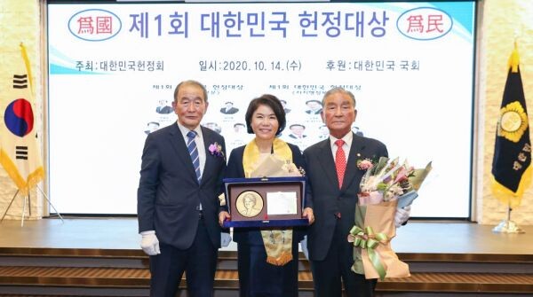 대한민국 헌정대상은 전·현직 국회의원 등 3,100명으로 구성된 대한민국헌정회에서 헌법가치 수호, 국리민복 증진, 국가 미래전략 수립, 국가인재 양성에 기여한 공적을 평가해 주는 상으로 올해 첫 수상자를 배출했다.