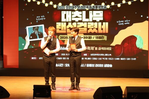 ‘대추나무 랜선걸렸네’는 유튜브에서 ‘보은대추온라인축제’ 실시간 방송으로 만날 수 있으며 원하는 연예인 방송 시 줌카메라 라이브로도 참여가 가능하다.