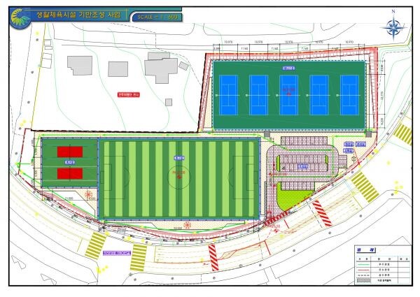 정규 최소규격 축구장 1면, 테니스장 5면, 족구장 2면을 조성할 예정이다.