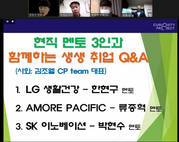 그룹 멘토링에서는 쿠팡 LG생활건강 SK이노베이션 등 7개 분야로 나눠 멘토들의 실무경험을 공유했다.