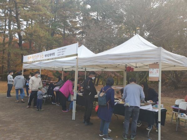 주말을 맞아 부소산성을 찾은 관광객들은 열 체크, 손소독 등 코로나19 방역수칙을 철저히 준수하며 ‘부소산성 늦가을 단풍 즐기기’를 주제로 나들이객을 대상으로 백제기와 필통 만들기,“단풍족자 만들기, 산수문전 탁본 등 체험 부스를 운영해 즐거운 추억을 선사했다.