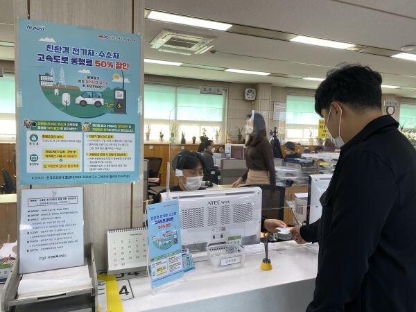 정부의 친환경자동차 이용권장에 동참하고자 한국도로공사는 지난 2017년부터 전기·수소차의 고속도로 통행료 50% 할인정책을 시행해오고 있다.