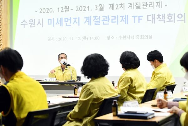 수원시는 12일 시청 중회의실에서 조무영 제2부시장 주재로 ‘계절관리제 TF 긴급회의’를 열고 제2차 미세먼지 계절관리제의 실행력을 높일 방안을 논의했다.