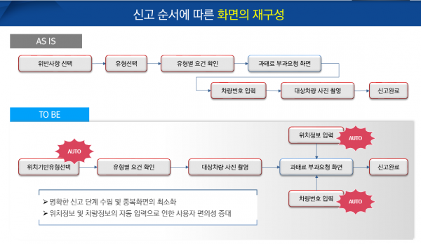 기존에 불법 주정차 신고를 위해선 6단계의 절차를 거쳐야만 했다.