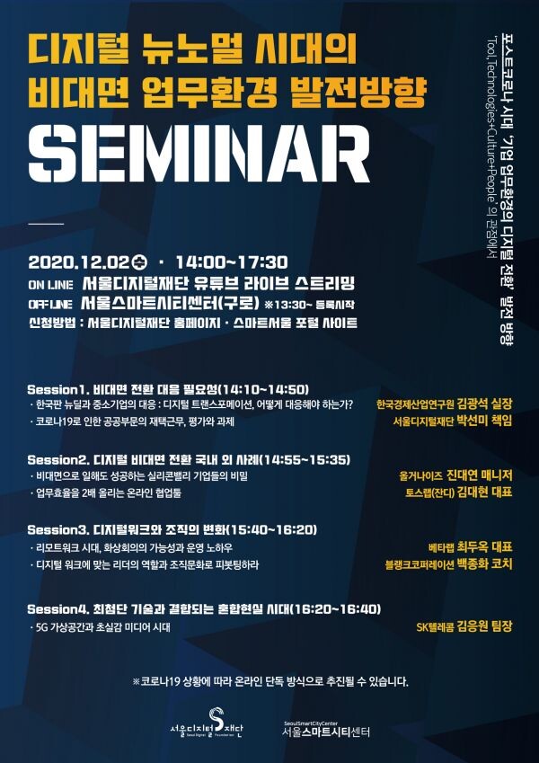 구로디지털단지에 위치한 서울스마트시티센터에서 오프라인 세미나가 진행되며 온라인의 경우 서울디지털재단 유튜브 채널을 통해 실시간으로 중계한다.