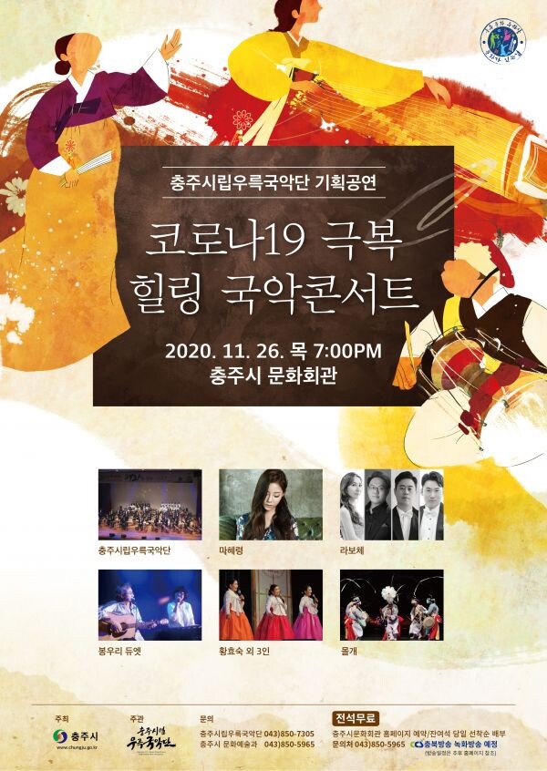 [무한뉴스] 충주시립우륵국악단이 오는 26일 오후 7시 충주시 문화회관에서 ‘코로나19 극복 힐링 국악콘서트’를 선보인다.