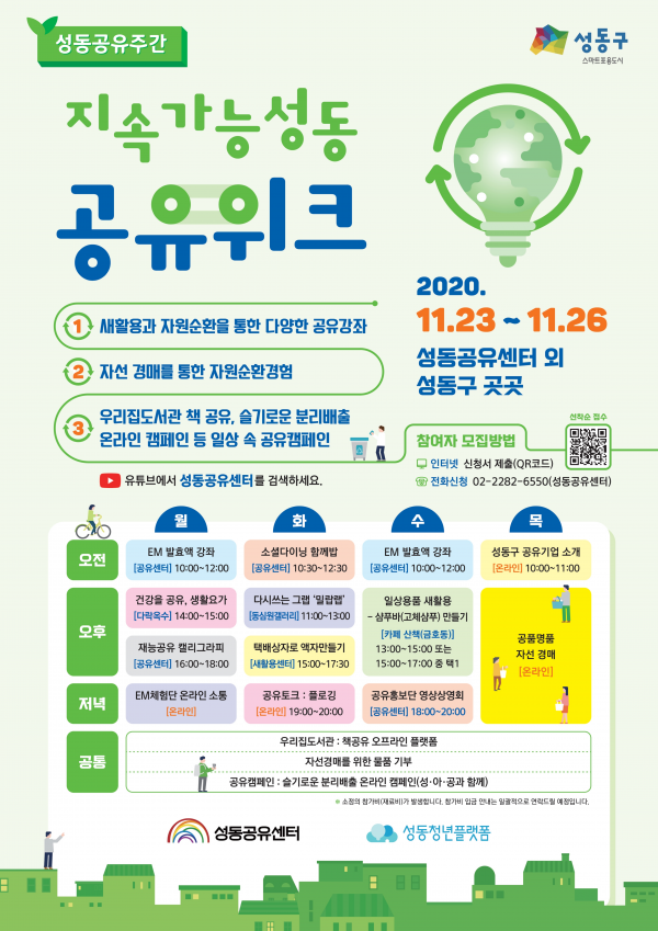 다양한 강좌와 참여형 프로그램의 참여를 원하는 주민들은 성동공유센터 홈페이지 또는 전화로 참여 신청이 가능하다.
