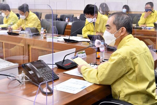 23일 시청 재난안전상황실에서 열린 ‘코로나19 추진상황 점검보고회’를 주재한 조무영 수원시 제2부시장은 “모든 영업장 업주, 시민들이 방역 수칙을 준수하도록 사회적 거리두기 2단계 관련 지침을 시민들에게 신속하고 정확하게 홍보하라”며 “감염이 발생하지 않도록 철저하게 점검하라”고 지시했다.