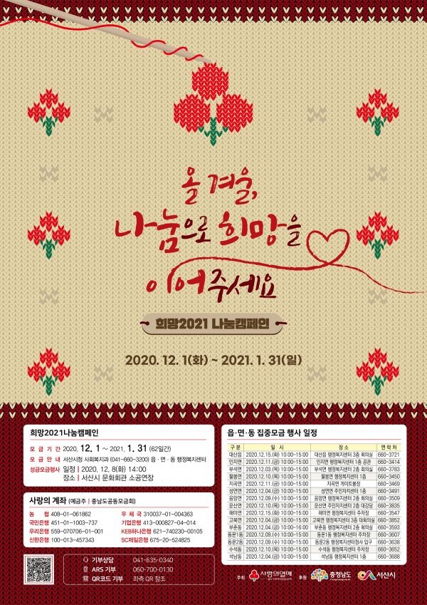 12월 1일부터 내년 1월 31일까지 실시, 12월 8일 서산시 집중모금행사