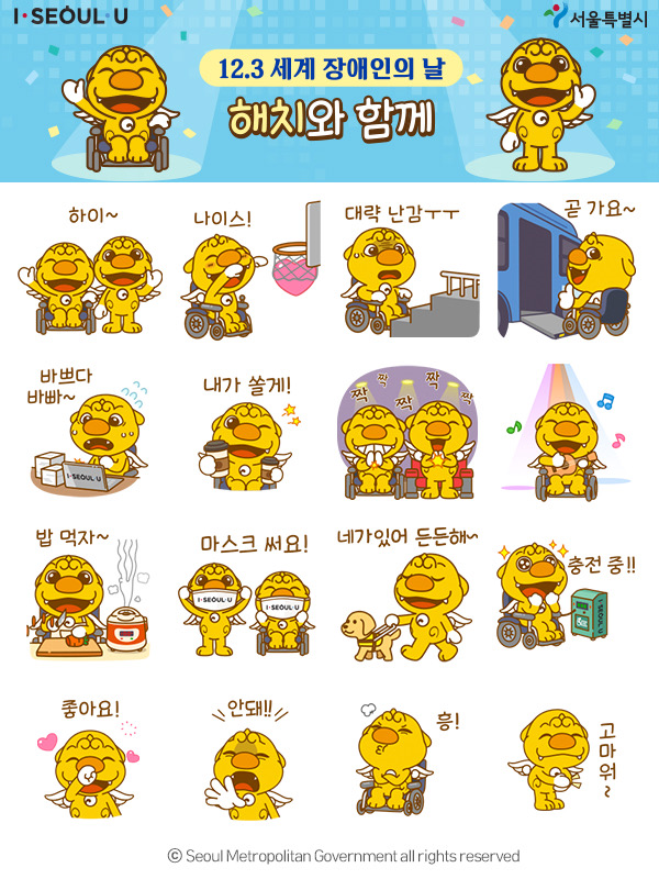 조경익 서울시 장애인복지정책과장은 “세계 장애인의 날을 맞아 비장애인이 장애인에 대한 인식을 개선하는 계기가 되길 바란다”며 “비장애인이 해치 이모티콘으로 소통하며 장애인과 함께 누리는 따뜻한 서울을 그려보길 기대한다”고 말했다.
