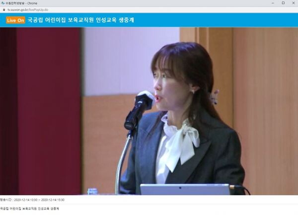 수원 iTV 홈페이지에서 생중계된 이날 교육은 조성연 수원여대 아동보육과 교수가 ‘교사의 행복은 교사의 전문성에서 나온다’를 주제로 진행했다.