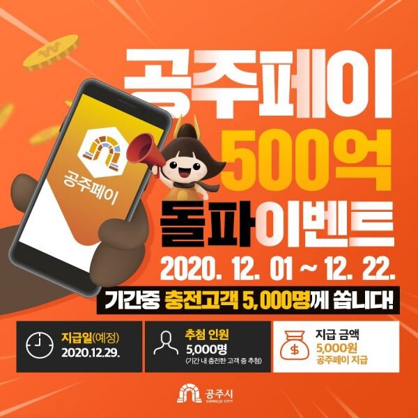 공주시, ‘공주페이’ 500억 돌파기념 새해맞이 이벤트 실시