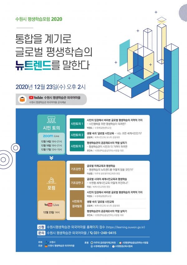 주제 발표는 지난 14~17일 원격화상 프로그램 줌을 활용해 시민 80여명과 수원시 평생학습관·외국어마을의 역할에 대해 논의한 ‘사전 시민토의’ 내용을 바탕으로 이뤄졌다.