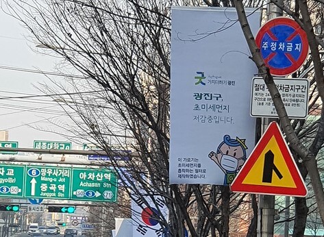 먼저 구는 전국 최초로 상습 교통정체 구간인 능동로 도로변 일대에 미세먼지 흡착 필터로 제작된 ‘가로기’를 설치했다.