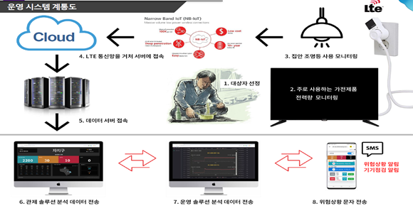예컨대 전력사용이나 스마트폰 사용이 일정 시간 전혀 없는 상황 등을 자동으로 감지해서 대응하는 내용이다.