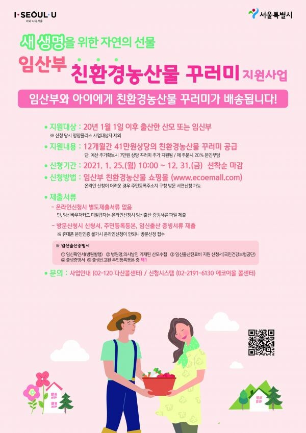 접수는 이달 25일 선착순 마감 시점까지로 임산부 친환경농산물 쇼핑몰 홈페이지 및 방문신청 가능하다.