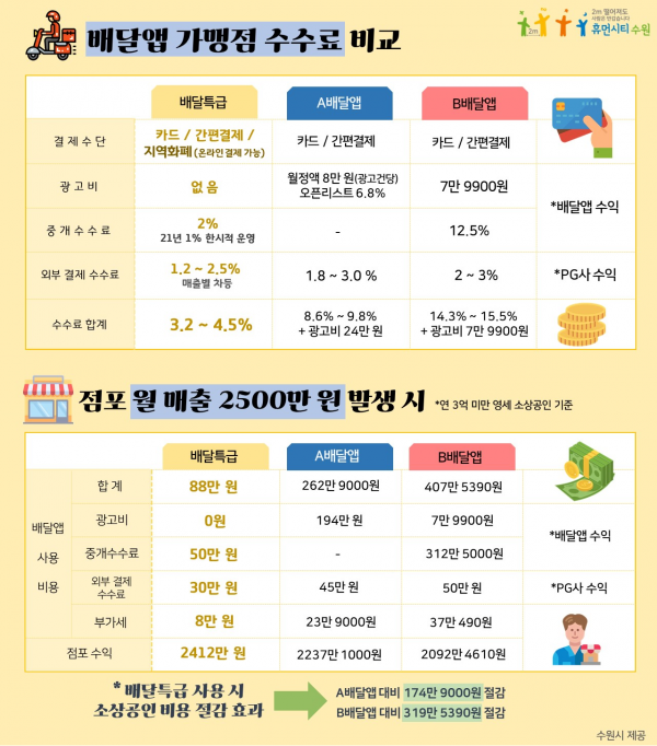 월 매출 2500만원인 가맹점의 배달특급 한 달 사용 비용은 88만원으로 기존 배달앱보다 훨씬 적다.