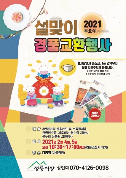 이벤트 소식을 들은 정릉동 주민 김00 씨는 “설을 앞두고 뛰는 물가에 걱정이 컸는데 제수용품 할인도 해주니 이번 차례상 준비는 전통시장에서 할 것”이라고 기대감을 비쳤다.