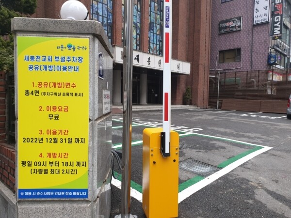 이와 함께 새봉천교회 주차공간 4면을 대상으로 민간 부설주차장 무료 공유 사업도 추진 중이다.