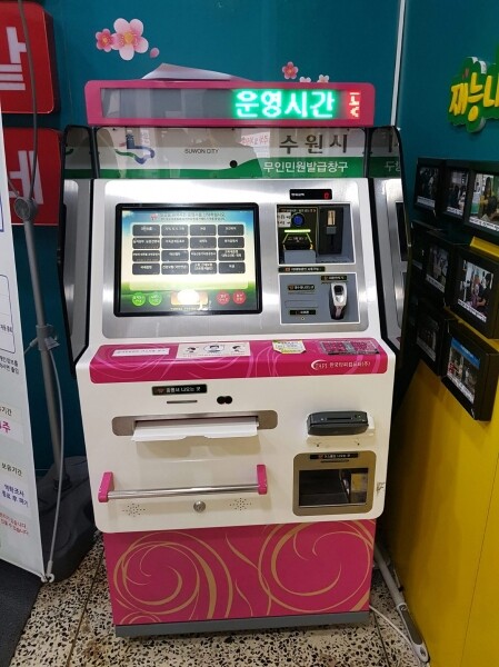 무인민원발급기가 설치되지 않은 세류1·3동, 행궁동, 매탄1동을 제외한 40개 동 행정복지센터에서 무인민원발급기 41대를 이용할 수 있다.