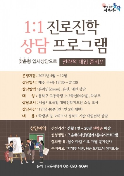 대상은 동작구에 거주하거나 관내 소재 고등학교에 다니는 재학생 또는 학부모, N수생 등이다.