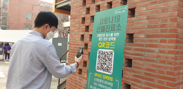 기존에는 대기 순서대로 종이 문진표를 수기로 작성했으나, 모바일로 선별진료소에 부착된 QR코드를 통해 전자문진표를 사전 작성하면 확인 후 바로 검사를 받을 수 있다.