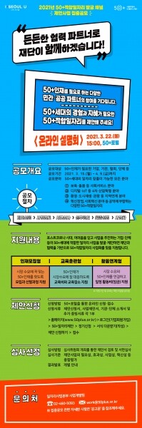 인재모집이 필요한 사업의 경우 시장 수요에 맞는 50+인재를 찾을 수 있도록 모집과 선발과정을 지원하고 교육훈련이 필요한 사업이라면 50+인재가 시장 수요에 잘 대응하도록 교육비와 교육장소를 지원할 예정이다.