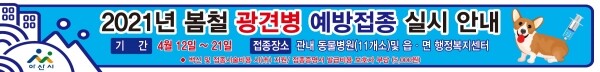 시민들의 접근성을 높이기 위해 관내 개업 동물병원 11개소와 읍면 행정복지센터 내 지정 장소에서 접종을 실시한다.