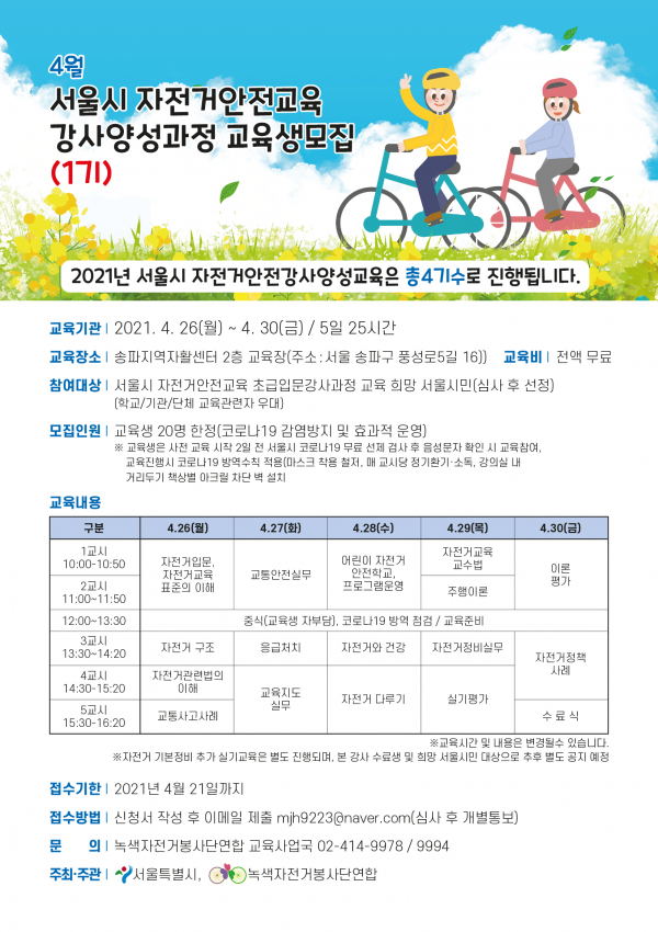 자전거 강사 양성과정 교육생은 올해 총 4기수 모집할 예정이다.
