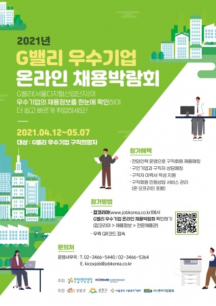 구로구 관계자는 “‘G밸리 우수기업 온라인 채용박람회’를 통해 기업과 구직자 모두 원하는 결과를 얻길 바란다”며 “코로나19로 변화하는 채용 상황에서 구직자들에게 실질적인 도움을 드릴 수 있도록 최선을 다하겠다”고 전했다.