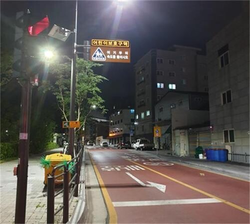 기존에 설치된 곳과 보호구역이 동일한 곳을 제외하고 81개 표지판을 교체해, 아파트 단지 내를 제외한 관내 전체 40개 초등학교의 모든 어린이보호구역 표지판이 태양광 LED표지판으로 개선되는 것이다.