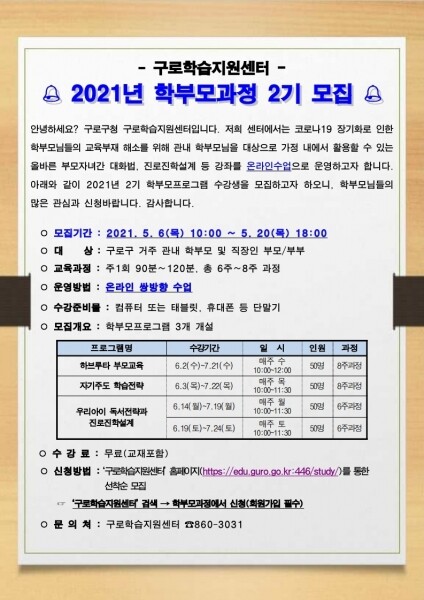 구로구는 부모와 자녀의 원활한 대화법과 자녀의 올바른 학습방법·진로 설계 과정 등을 제공하기 위해 이번 프로그램을 마련했다.